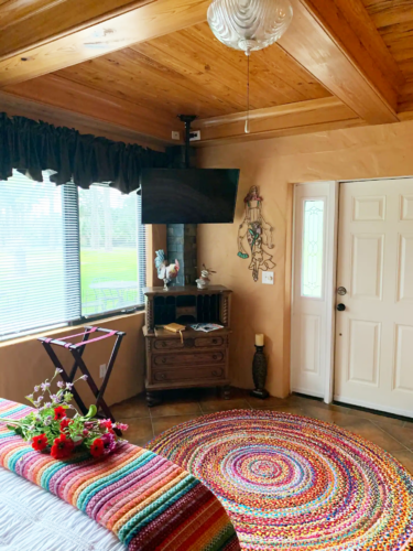 Your lovely, quaint apartment off the main house comes complete with a queen-sized bed, a coffee bar with various coffees and teas, a single burner, an instant pot, a small refrigerator, 2 grills (propane and charcoal), a toaster, an electric skillet, and a microwave oven. An additional single bed is available upon request for a $20 service charge. A beautiful picture window offers a stunning view of the St Johns River. Charming Guatemalan theme! The hot tub overlooking the River is available from September through February.