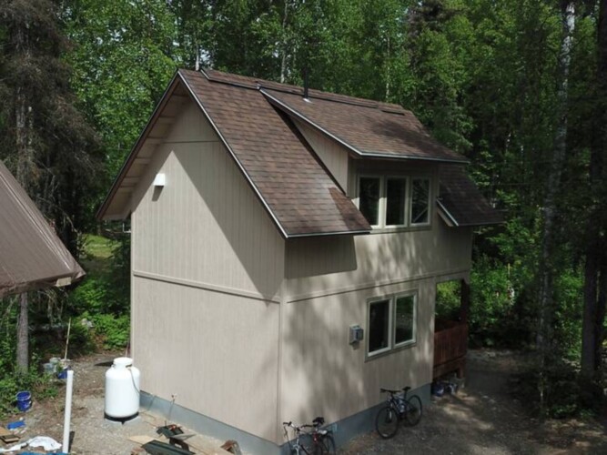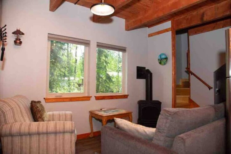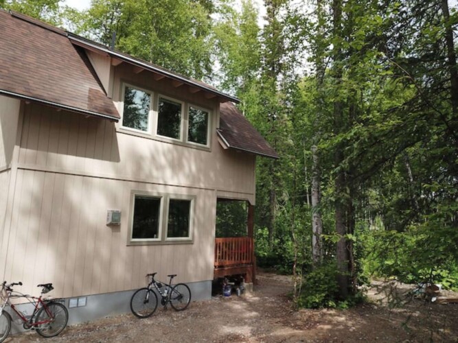 The cabin in the woods is open for private use. A fully stocked kitchen, a private deck, indoor fireplace, outdoor campfire wood for one night, and gas barbeque grill. Quiet neighborhood close to wooded paths and wilderness walks along Talkeetna River.