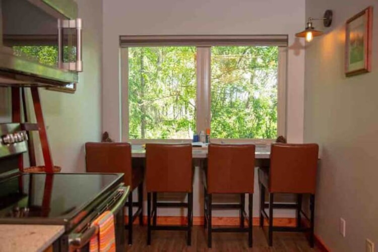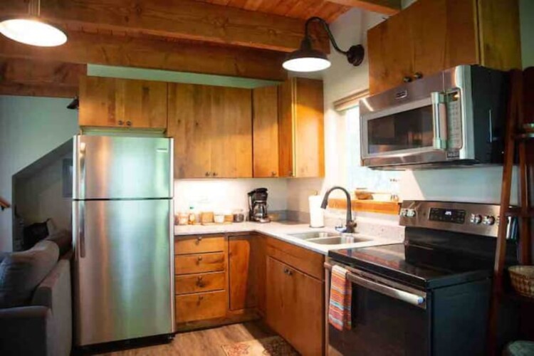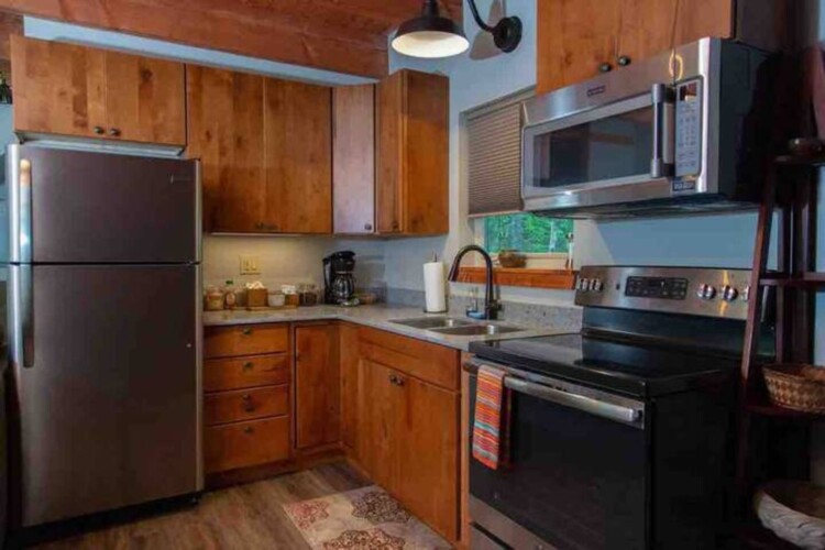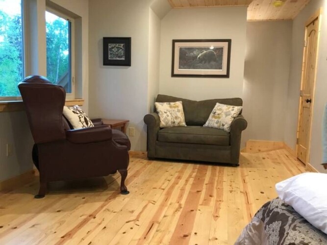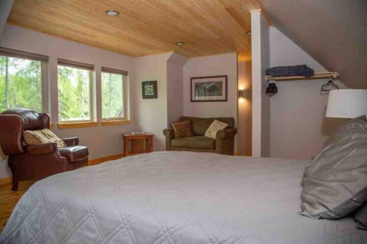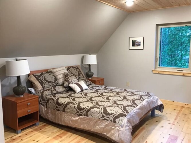 Modern new cabin with natural wood accents. All new construction with bedroom being on second floor surrounded by trees. Great cool evenings on covered deck. Cabin is located in a quiet neighborhood just minutes away from downtown pubs and restaurants. Fire pit, barbeque and local nature gives privacy plus time to enjoy being with family and friends.