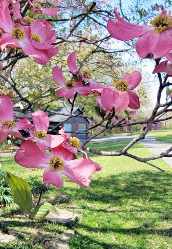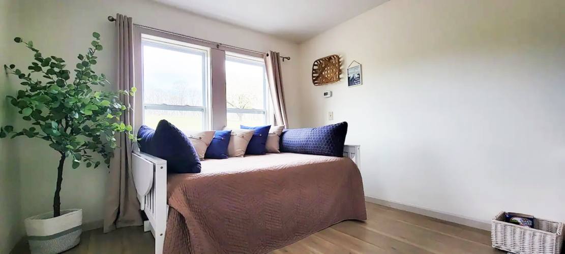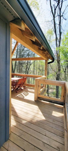 This cottage is near our home but situated so that the usable space around it is private and opposite our home a couple of hundred feet away. The trees around the back deck give a treehouse feel. Paved roads lead around our barns to the 800 ft of riverfront.