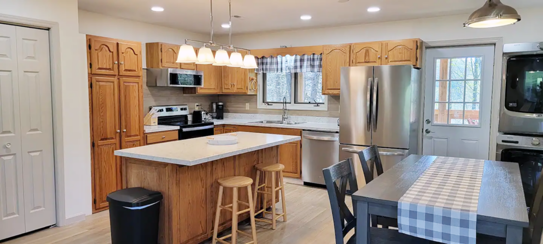 Enjoy the lovely setting of this rustic and romantic spot in nature. Our fishing cottage is located on our 40-acre farm with 800 ft. of Watauga riverfront access—paved driveways to the cottage and river. The home was recently renovated with all-new furniture, beds, appliances, and more. Linens, paper products, and toiletries are provided—everything you need to enjoy a fishing trip or romantic getaway.